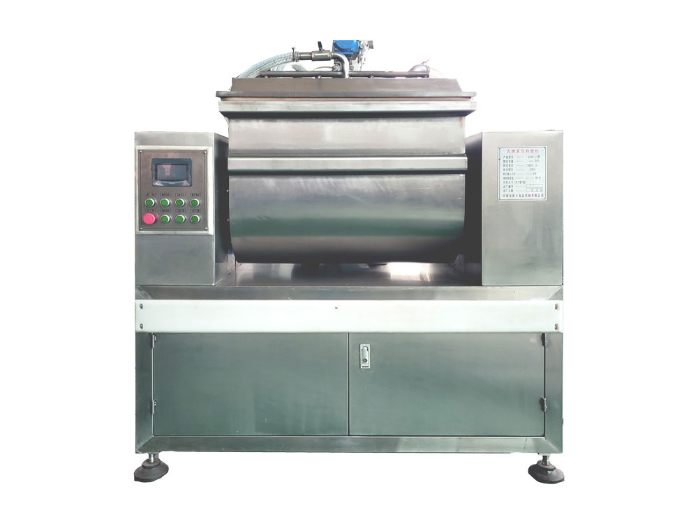 →臥式真空和面機系列  →型號50/75/100/150/200/300型  →功能  主要用來和制餃子皮、餛飩皮、鮮食面、水煮面、掛面等,若更換攪拌器,可適用于速凍行業(yè)的各種面食制品的加工?!  厣 ?、配備智能觸控顯示屏,參數(shù)自由設(shè)定,可手動攪拌、可一鍵攪拌。并可根據(jù)工藝設(shè)定和面時間和真空度?! ?、設(shè)備由PLC控制,可實現(xiàn)自動起蓋、自動計量加水、自動翻斗、自動進粉、抽真空和面(拌粉)、自動排面功能?! ?、獨特的密封結(jié)構(gòu),有效防止面團受到污染,進一步提高食品安全。  4、和面過程在真空負壓下進行,使面粉中的蛋白質(zhì)在短時間、充分的吸收水分,形成面筋網(wǎng)絡(luò),從而使面團外表光滑、內(nèi)部結(jié)構(gòu)均勻,透明度高、口感好?! ?、可定制面斗冷卻系統(tǒng),使成品面團溫度恒定,確保批量生產(chǎn)的產(chǎn)品質(zhì)量穩(wěn)定。  6、設(shè)備主體采用不銹鋼制造,符合現(xiàn)行有關(guān)食品衛(wèi)生標準。  →主要技術(shù)參數(shù)產(chǎn)品型號額定容量(kg)攪拌轉(zhuǎn)速(rpm)主電機(kW)副電(kW)外形尺寸(長×寬×高)ZHW  50型50板式40 攪棒44/887.51.11470×932×1483ZHW  75型75板式40 攪棒44/88111.851440×890×1655ZHW 100型100板式40 攪棒44/88111.851440×890×1794ZHW 150型150板式40 攪棒44/88221.851764×1070×1815ZHW 200型200板式40 攪棒44/88221.851964×1070×1815ZHW 300型300板式40 攪棒44/883432074×1170×2022板式攪拌器滾杠-真空油條包子狼牙棒攪拌器