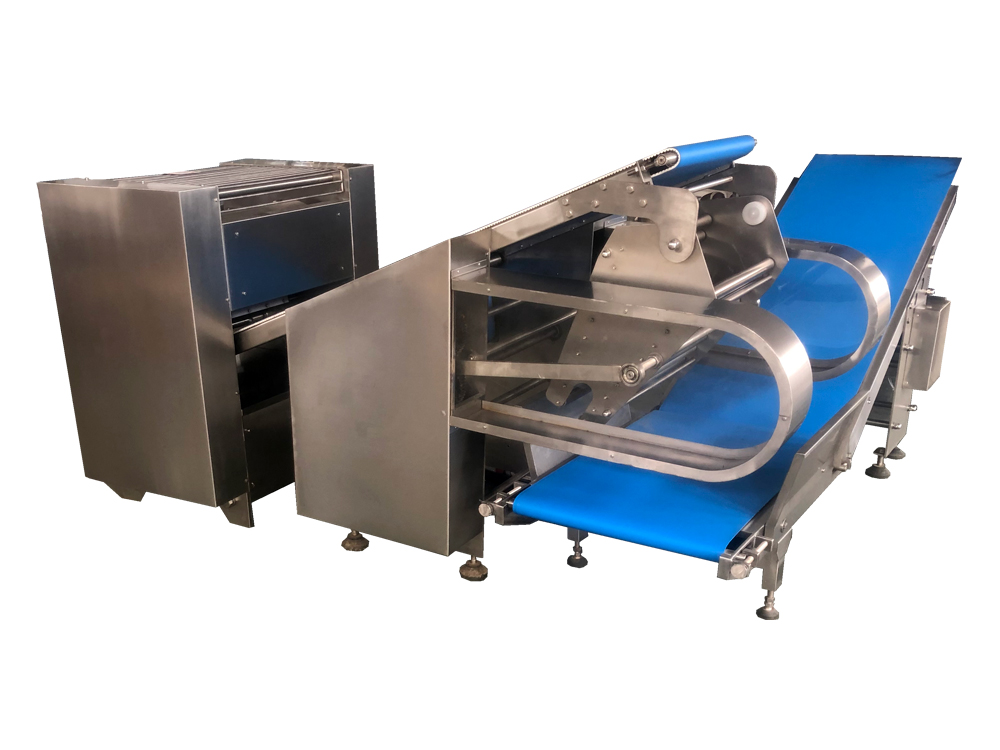 2、疊層機使面帶Z字型折疊,進一步豐富面帶網狀結構,提高面筋度,設備可根據客戶場地需求選擇不同的擺放形式。