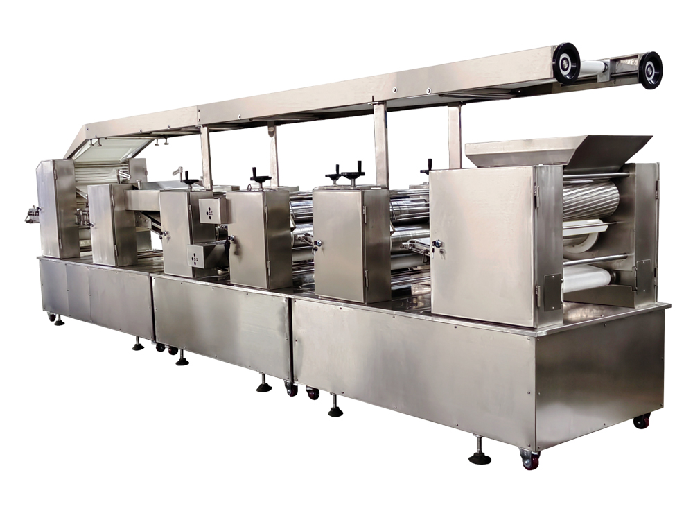3、設備為變頻控制,每一道壓輥都采用單機驅動,通過測距傳感器,實現(xiàn)自動面帶張緊控制,多輥聯(lián)動。快速輕松地制作大量面皮,提高生產效率。
